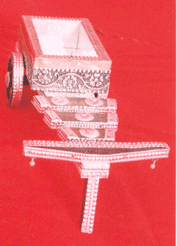 Item Description: Decorative cart carved traditionally to give an elegant look when displayed on the side table.
